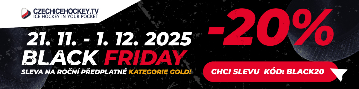 Na czechicehockey.tv běží Black Friday akce — 20% sleva na roční GOLD předplatné.