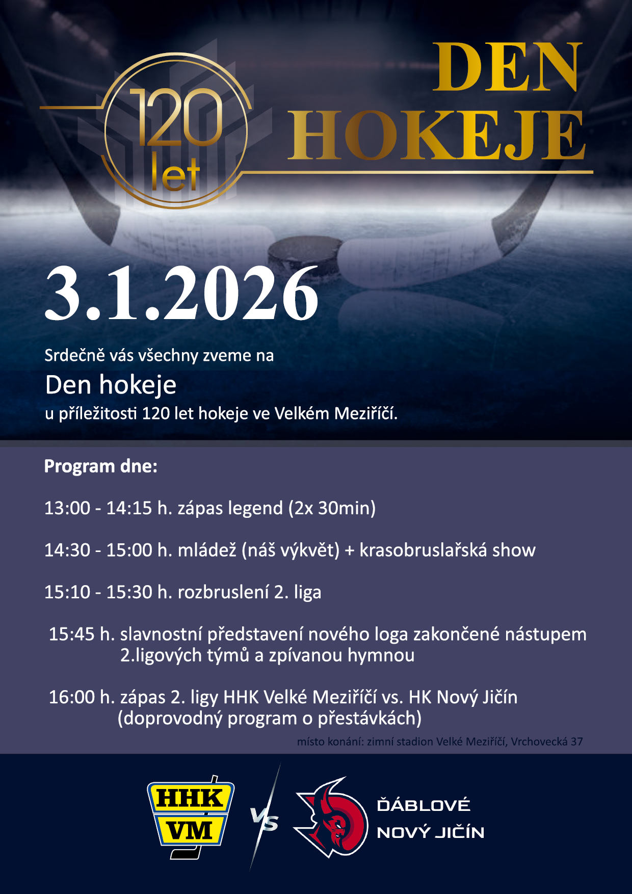 V blížícím se roce 2026 oslaví hokej ve Velkém Meziříčí 120 let od prvních písemných zmínek. Při této příležitosti se na velkomeziříčském zimním stadionu první sobotu nového roku uskuteční Den hokeje.