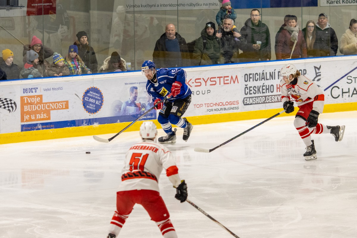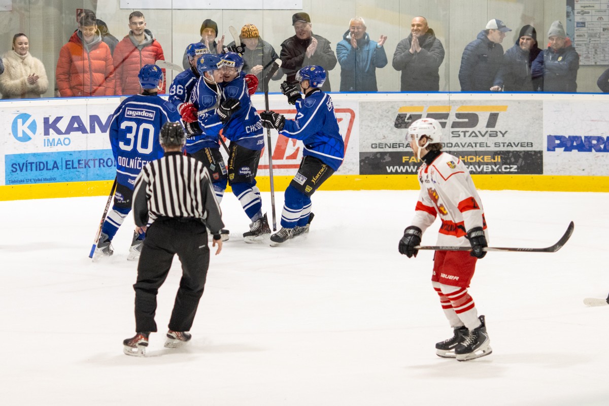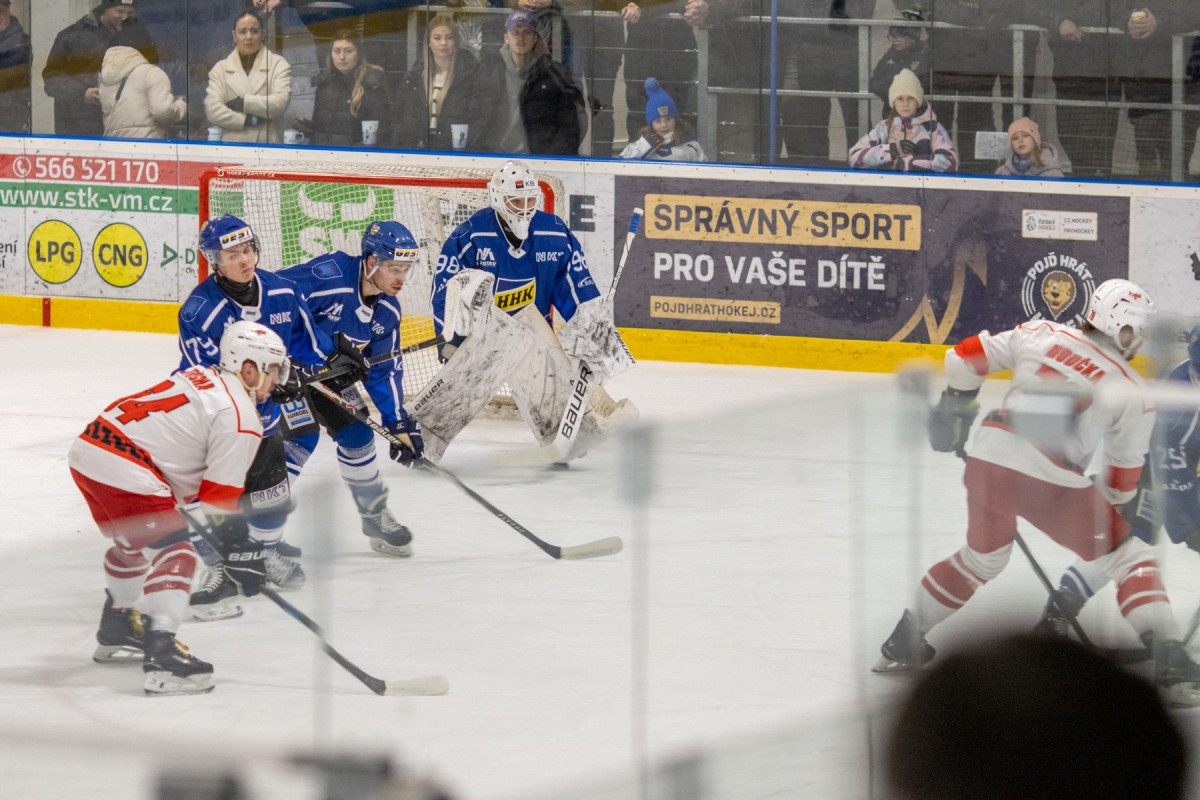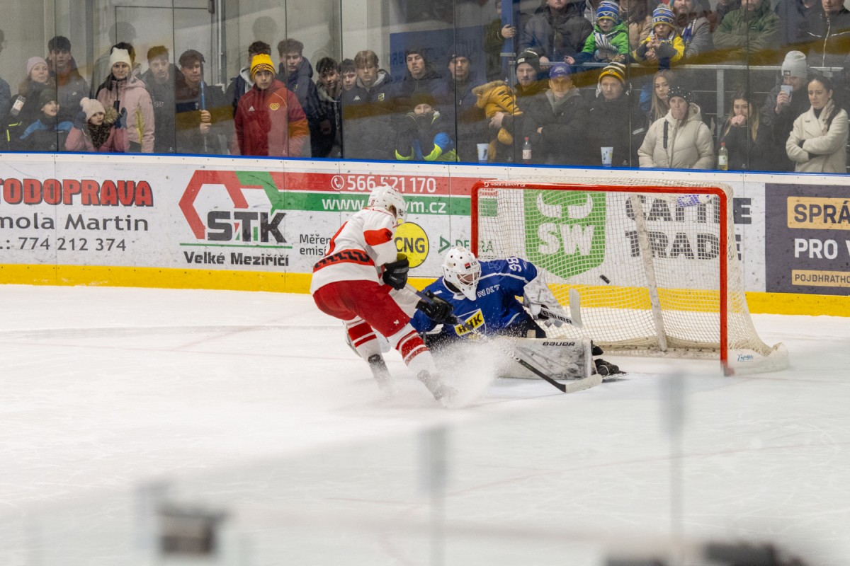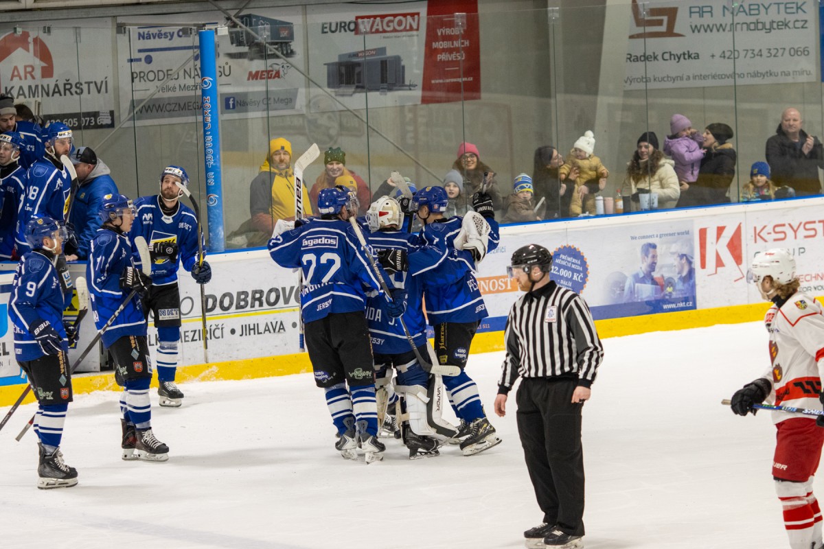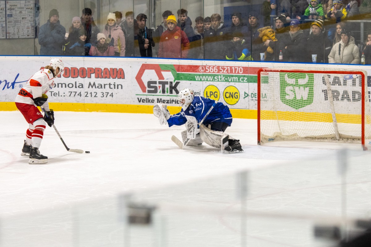 Páteční okresní derby mezi Velkým Meziříčím a Žďárem nad Sázavou přitáhlo do hlediště více než 6 stovek fanoušků, kteří od začátku sledovali vyrovnaný souboj okresních rivalů. V první třetině viděl slušně zaplněný velkomeziříčský stadion vyrovnaný souboj. Jedinou branku vstřelil z dorážky žďárský Tomáš Střecha. Druhá třetina byla v režii Velkého Meziříčí. Domácí tým nakoply využité přesilovky a velkomeziříčská střídačka rázem žila! Ve třetí části dokázali hosté ze svého tlaku srovnat stav a derby šlo do prodloužení, ve kterém ani jeden z týmů nedokázal rozhodnout. V nájezdové loterii potom dvěma trefami rozhodl o triumfu Velkého Meziříčí Tomáš Jaša!